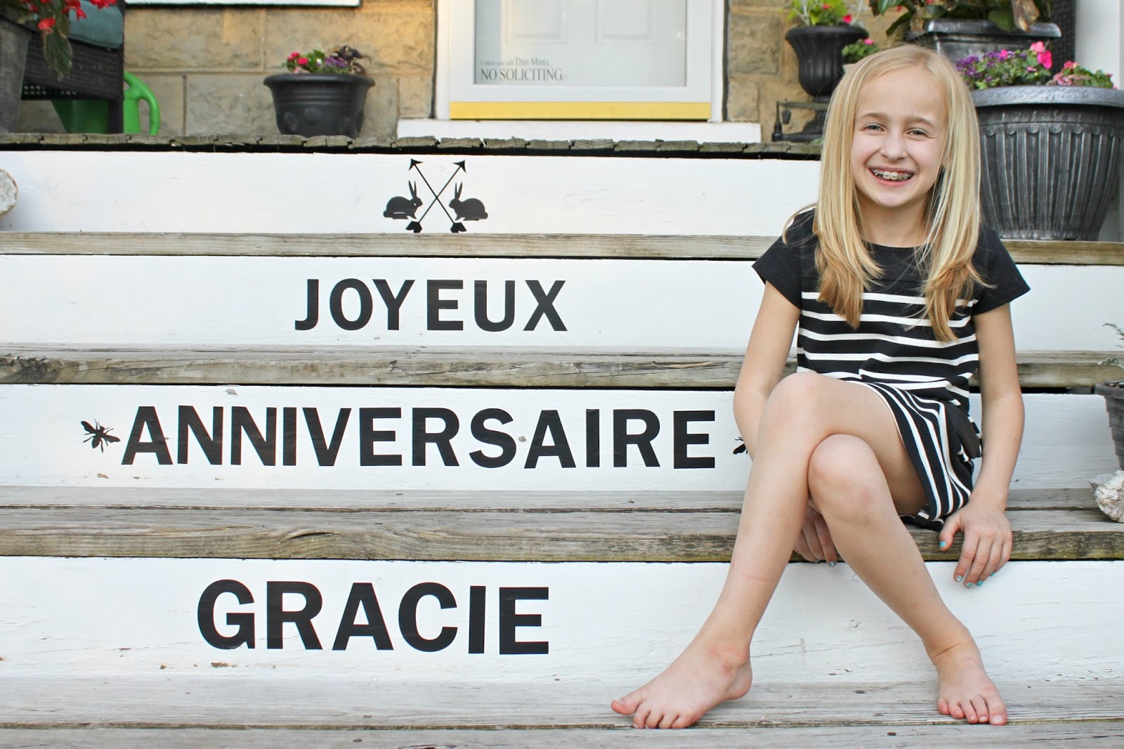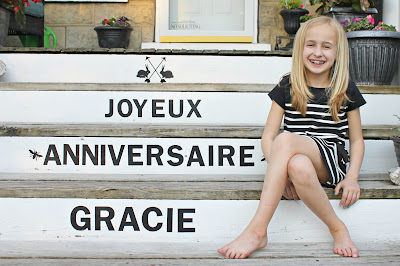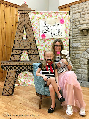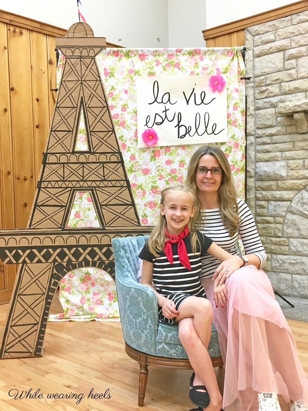 I would have been happy keeping the Eiffel Tower propped against the ladder but the Mister didn't like the idea of 14 nine year old girls being able to climb to the top of the Eiffel Tower so he made a stand.