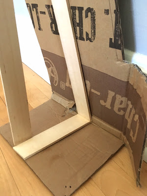 After tracing each section or part onto the cardboard, I'd cut that section out before moving on to the next section, adjusting my design as I went. I used the outside of the ladder to determine the width of the Eiffel Tower, again, tracing from the ladder side to determine the shape I used.
